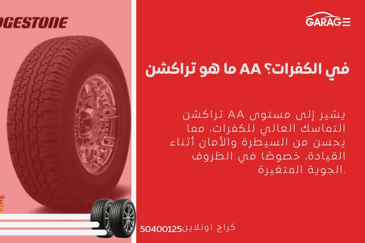 تراكشن AA يمثل أعلى مستوى من التماسك في الكفرات، بينما تتضمن أنواع التراكشن الأخرى مثل A وB مستويات أدنى من الأداء. لذلك، يعرف Tراكشن AA بالكفاءة العالية والأمان الفائق في驾驶. لمزيد من التفاصيل، يمكنك الرجوع إلى المعلومات السابقة.